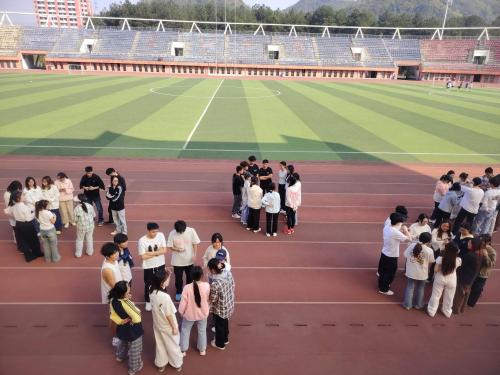 本次活动趣味性与运动量兼具。开场以“我和我的家乡”名字接龙进行“破冰行动”,打破院系壁垒,促进同学之间的交流;“随机歌单”结合跑动韵律,让同学们在音乐中进行沉浸式有氧运动;“两人三足”则通过相互配合,增强团队协作。活动现场欢笑声此起彼伏,通过寓“健”于乐,让同学们在这场春日运动中感受“快乐运动、科学控重”的重要意义,树立了健康生活的理念,为构建“全民参与、人人受益”的体重管理格局贡献青春力量。