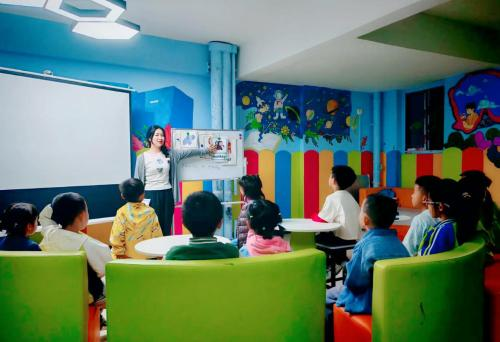 “贵财有爱,‘语’你同行”志愿服务团队在学校西区公租房社区开展以“Love Animals”为主题的语言启蒙志愿服务活动,共有10余名社区小朋友参加。