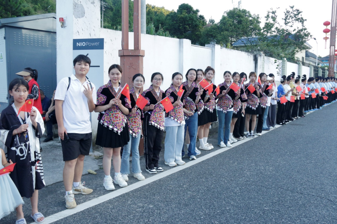 7月3日晚,实践队身着苗族服装,手举鲜艳的五星红旗,在社区工作人员的引导下整齐列队,用最质朴的方式迎接支援榕江县抗洪救灾的英雄们凯旋。同学们齐声高喊“欢迎英雄回家”,表达着对前线"战士"们的崇高敬意。这场临时策划的迎接仪式,为此次的“三下乡”社会实践增添了一份厚重的注脚,为同学们上了一堂生动的实践课:团结不是口号,是灾难来临时递出的手,是平安归来时唱起的歌。而这群青年,将带着这堂生动的实践课,把民族团结的种子播向更远的地方。
