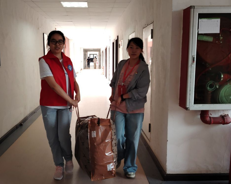 “重”任在肩:行李搬运组的同志们不辞辛劳,一次次接过新生手中沉重的行囊,汗水浸湿了衣背,却始终笑容满面,用坚实的臂膀为新生卸下了初来乍到的第一份负担。
