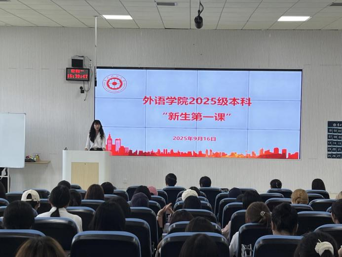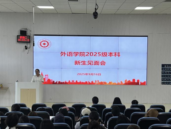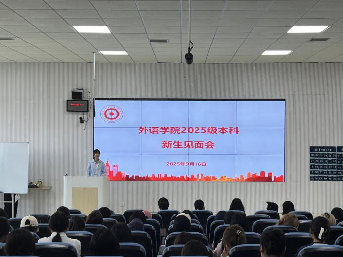 见面会的最后,学院党委书记黄贵平为 2025 级新生讲授 “新生第一课”。他强调,外语不仅是沟通的工具,更是传递中国声音、促进文明互鉴的载体,希望新生们在学习过程中始终牢记 “国之大者”,将个人理想与国家发展紧密结合;同时,要珍惜大学时光,主动克服学习中的困难,不断提升专业能力与综合素养,以优异的成绩回报家庭与社会。黄书记的授课既有思想高度,又贴近新生实际,为新生们的大学生活指明了方向,让大家深受启发。