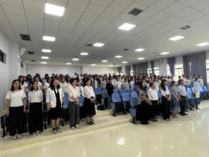 下午2点半,见面会在庄严的中华人民共和国国歌声中拉开帷幕。全体师生起立,高唱国歌,激昂的旋律不仅展现了师生们浓厚的爱国情怀,更让新生们在庄重的氛围中感受到作为新时代大学生的责任与使命。