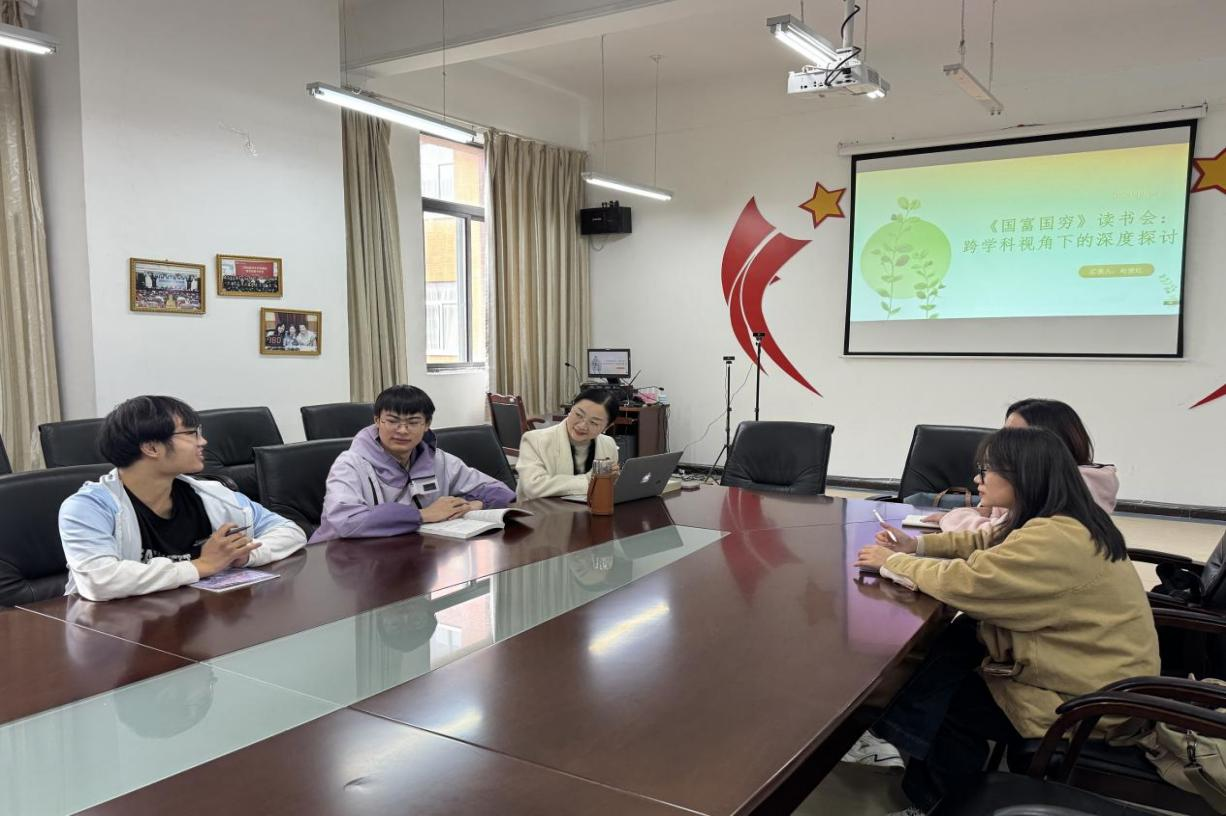 在励学楼301会议室举办《国富国穷》“读书沙龙”活动。本次活动特邀经济学院赵俊红老师主持,以戴维·S·兰德斯教授的这部经典著作为核心,聚焦“国家命运沉浮背后的深层逻辑”,吸引了来自不同专业的同学踊跃参与,现场氛围热烈。