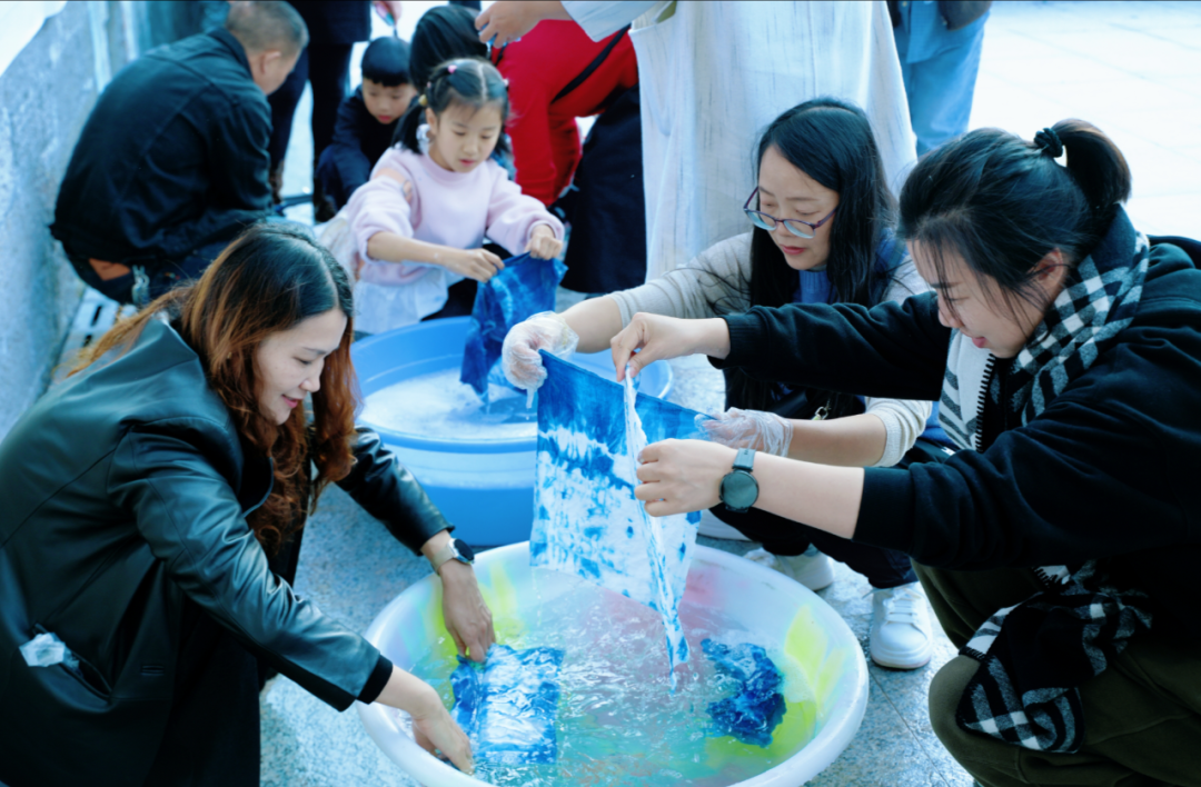 活动中,老师们观看了被誉为“明代军屯活化石”的屯堡地戏——这一国家级非物质文化遗产。六百年来,地戏通过口传心授,将“忠义”“勇敢”“家国情怀”等价值观代代相传,已成为融入屯堡人日常肌理的精神寄托。此外,大家还亲身体验了打糍粑、非遗扎染等传统技艺,并在古镇的青砖黛瓦与深巷石阶间,实地感受了屯堡建筑的历史风貌与文化底蕴。