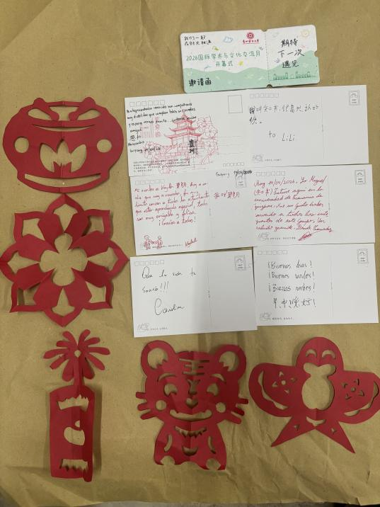 西语角近期特别邀请贵州中医药大学厄瓜多尔留学生参加中西文化交流主题活动,以西班牙语为纽带,在剪纸体验与明信片互赠中,共话情谊、互鉴文明。