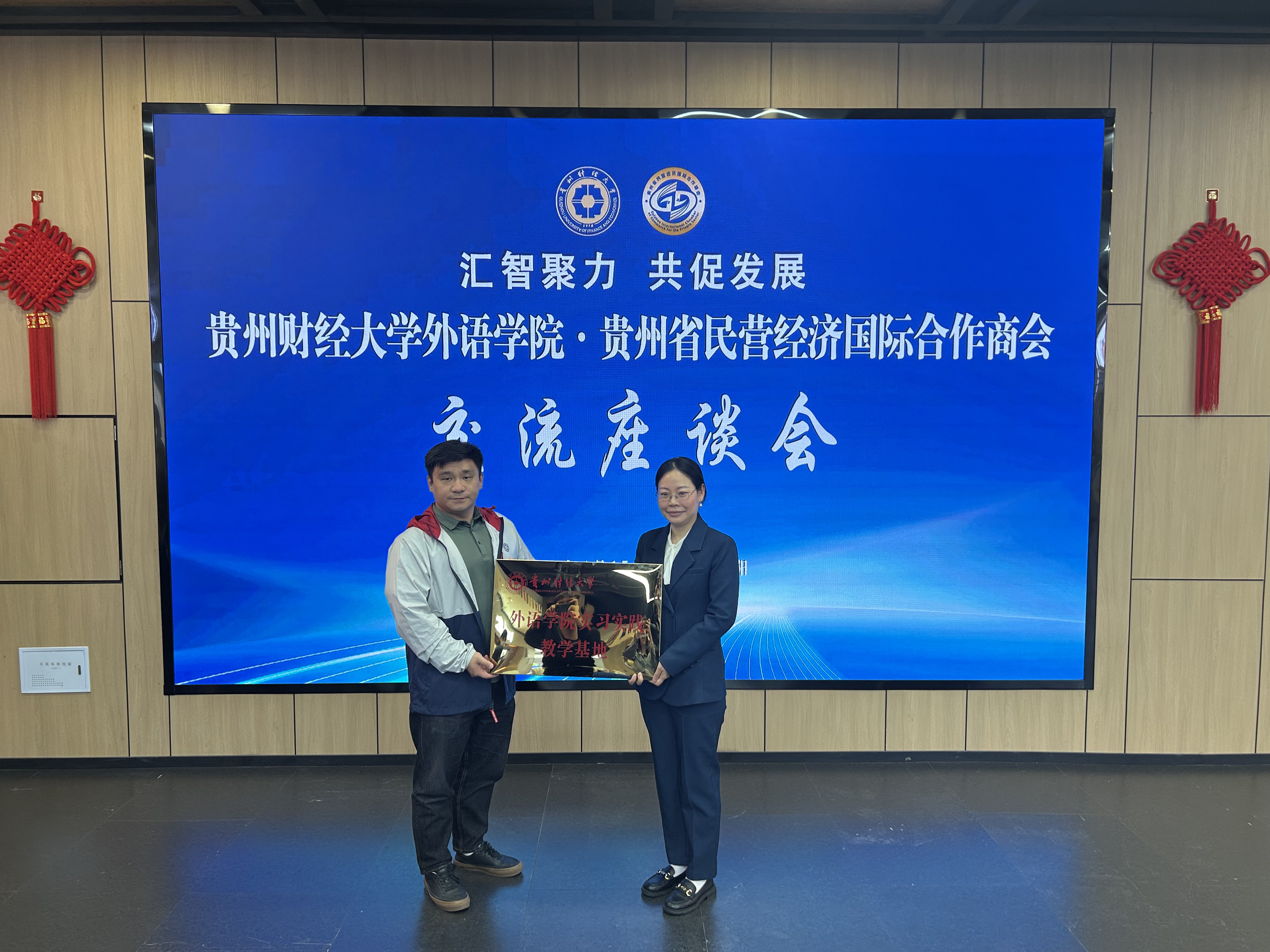 院长刘利音、副院长唐丽君一行赴贵州省民营经济国际合作商会开展校企合作座谈交流,并举行实习基地签约授牌仪式。