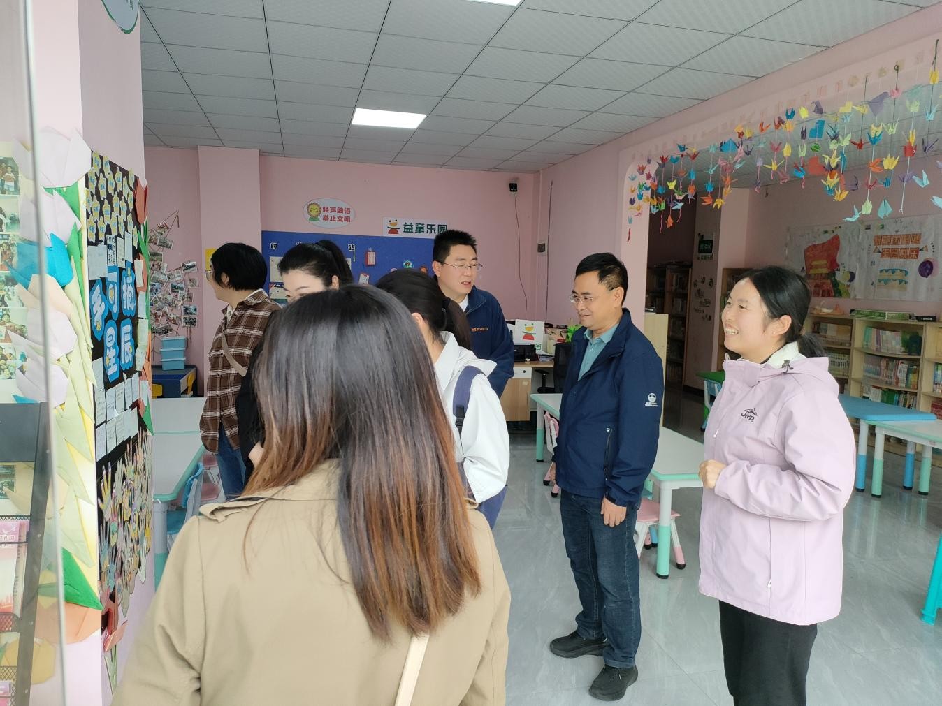 一行参观了社区 “益童乐园” ,详细了解 “贵财有爱 ‘语’你同行” 志愿服务项目在社区的落地推进情况,并向社区捐赠帮扶物资,以实际行动支持社区建设与发展。同时,与街道、社区及驻村干部深入交流基层治理经验,共同谋划下一阶段帮扶工作重点。