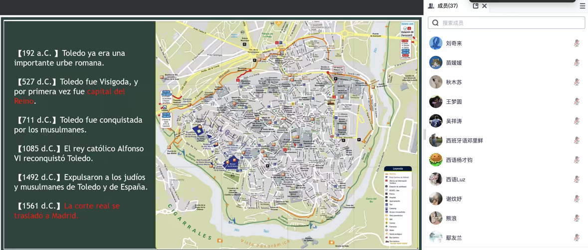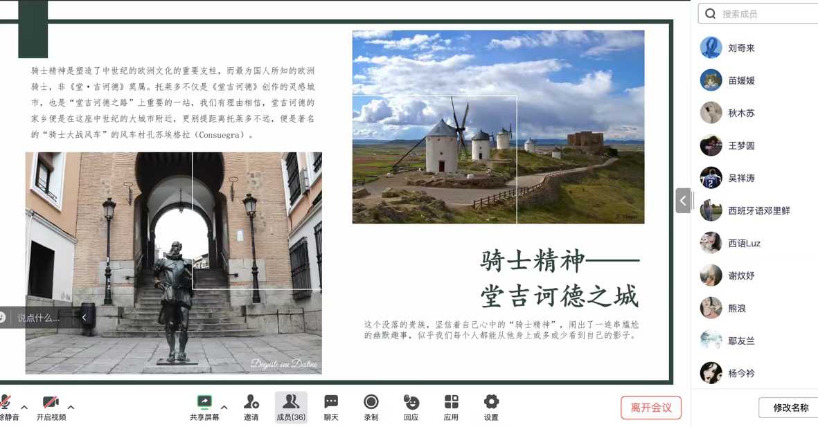 宣讲会上,朱伊灵Linda老师首先详细介绍了我校与卡斯蒂利亚拉曼查大学的校际合作交流项目。该项目学习地点坐落于西班牙知名世界遗产城市托莱多,这座城市历史底蕴厚重,文化氛围浓郁,同时拥有极为纯正的西班牙语语言环境,是沉浸式学习西班牙语、感受西班牙文化的理想之地。