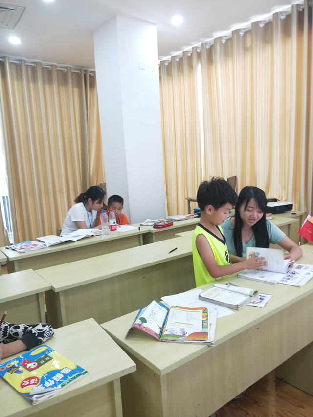 我们8个人分成两组,一组辅导一至三年级的学生,另外一组辅导四至六年级的学生。