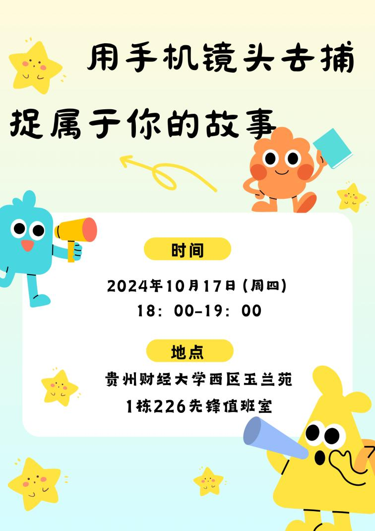 本期“一站式”学生社区先锋值班室将举办“用手机镜头去捕捉属于你的故事”主题小课堂。我们特别邀请了色色动漫
