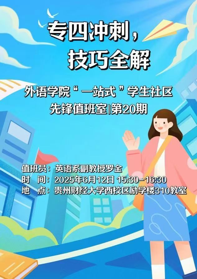 同学们,本周末将迎来英语专业四级考试,你是否还在为写作无从下笔而焦虑?是否还在为听力反应慢而抓狂?别慌!本期“一站式”学生社区先锋值班室我们特邀英语系教工党支部书记罗金博士担任值班员,为大家带来专四核心板块——听力、写作的备考攻略,助你精准突破薄弱环节,高效冲刺高分!