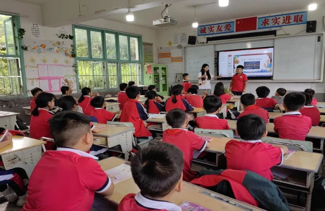 侗寨支教实践小组在李苇和罗玉洁的带领下,分别深入从江县小黄小学和黎平县肇兴中心小学,他们发挥专业优势,将英语语言与本土文化传承相结合。实践团队精心设计具有侗族文化特色的英语课件,将侗寨、侗歌、鼓楼、风雨桥、吊脚楼、长桌宴等民族文化元素融入课堂教学,通过唱侗歌、学英语、做游戏等寓教于乐的方式,将英语语言学习与民族文化传承融合在一起。