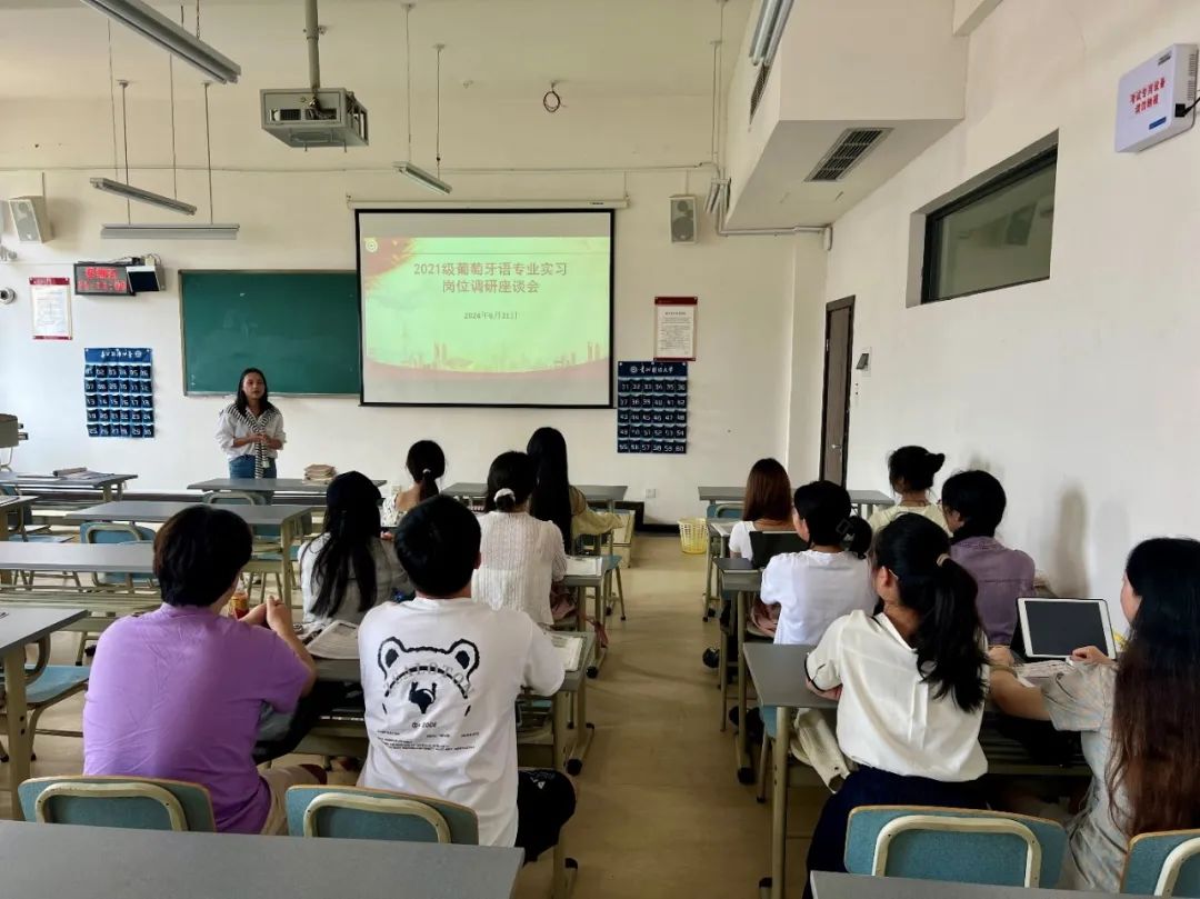 葡萄牙语专业开展专业实习岗位调研座谈会,会议由葡萄牙语专业负责人邢家玮老师主持,21级葡萄牙专业全体学生参加。