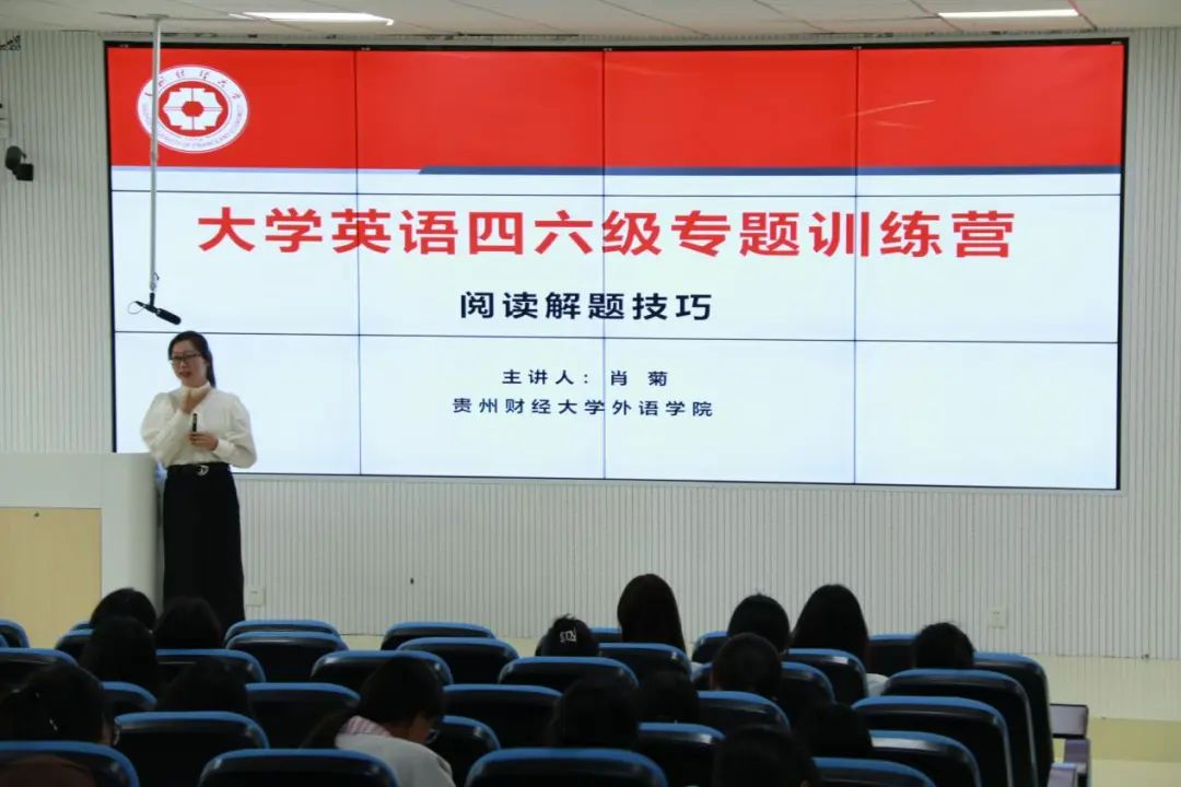 大学外语第二教研室负责人肖菊老师主讲,主题为阅读解题技巧。