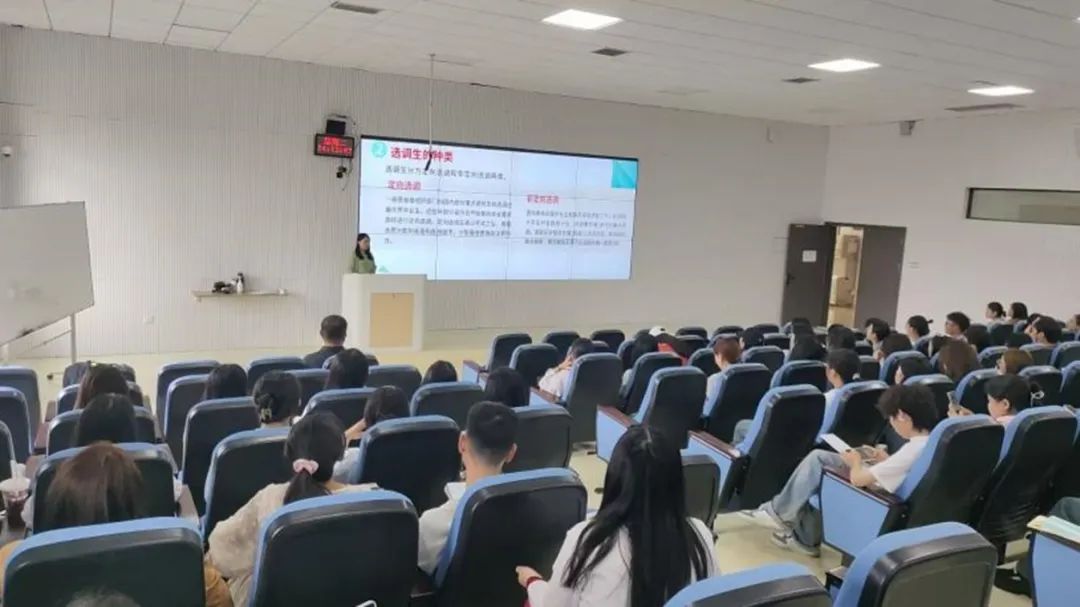第一位分享者是来自翻译专业的肖地翠同学,她是2023年度本科生国家奖学金获得者,2023年12月,她成功通过贵州省委组织部的定向选调生招录考试。她向同学们她讲述了自己如何在国家资助政策的帮助下,克服了学习和生活中的困难,逐步提升自己的综合素质。她用自己的亲身经历告诉在座的同学们,只要心怀梦想,坚持不懈,就一定能够实现自己的人生价值。