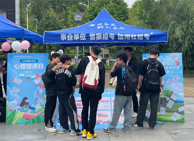 在学校五四广场举办“5·25全国大学生心理健康日”现场活动,为同学们提供了一个增进心理健康意识和情感交流的平台。