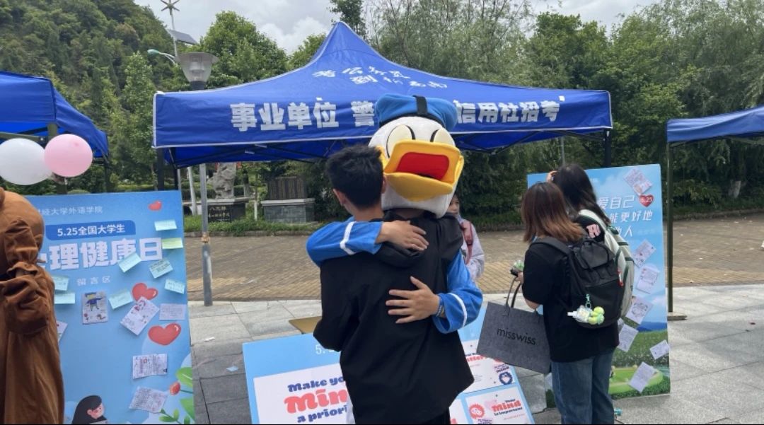为缓解学生们的学习压力,活动还特别设置了“解压抱抱”环节。在这个环节中,学生们与卡通人偶拥抱,释放内心的压力,感受来自同伴的温暖。这一环节受到了学生们的热烈欢迎,大家纷纷表示在拥抱中感受到了前所未有的轻松和愉悦。