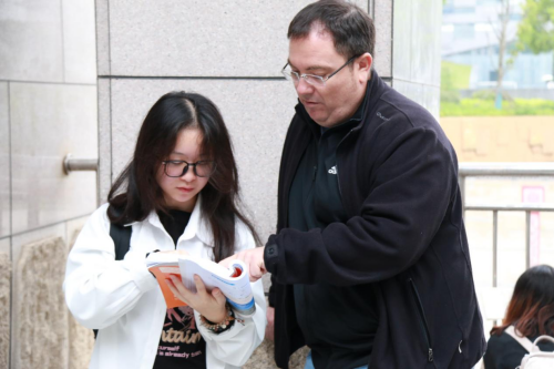 语言之美,晨光中绽放。迎着初升的太阳,外院学子们在广场上,手拿书本与学习资料,用晨读的方式新的一天。走廊中上,花坛边,阶梯上,都能看到外院学子们晨读的身影;耳边响起的,是朗朗读书声。学生们或独自朗读,或与指导老师交流学习。沉浸在英语的美妙发音中,领略着西班牙语的独特魅力,品悟着葡萄牙语的深沉意趣。晨读,是外院学子们与语言最亲密的接触方式。