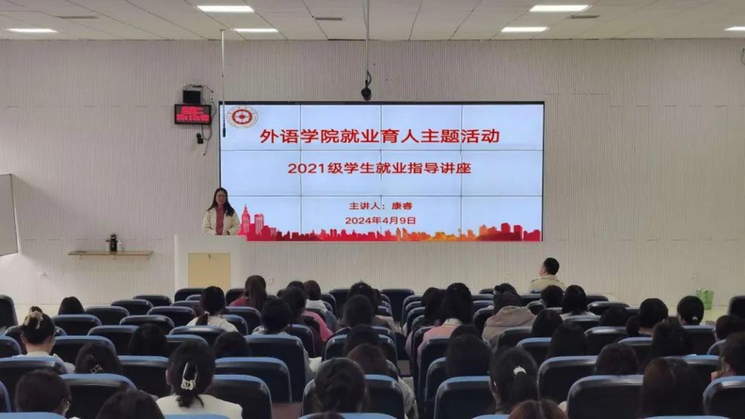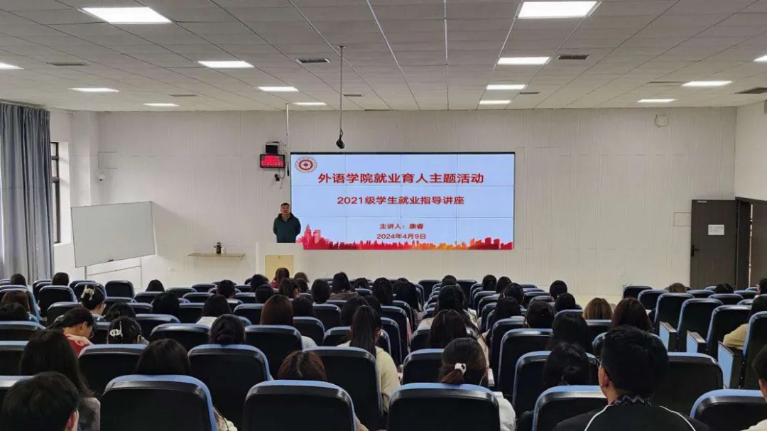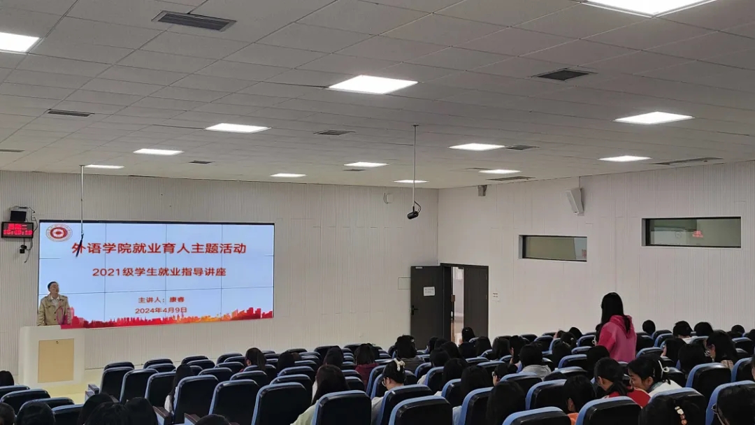 在乐学楼2—1阶梯教室开展“就业育人”主题教育活动之2021级学生就业指导讲座。本次讲座旨在帮助2021级本科生尽早明确就业方向、尽快学会简历撰写,帮助学生更好地进入求职就业期。讲座由学院党委副书记汪欢、校外就业导师康睿、2021级本科生辅导员刘鹏程老师主讲,学院团委田婷老师主持。