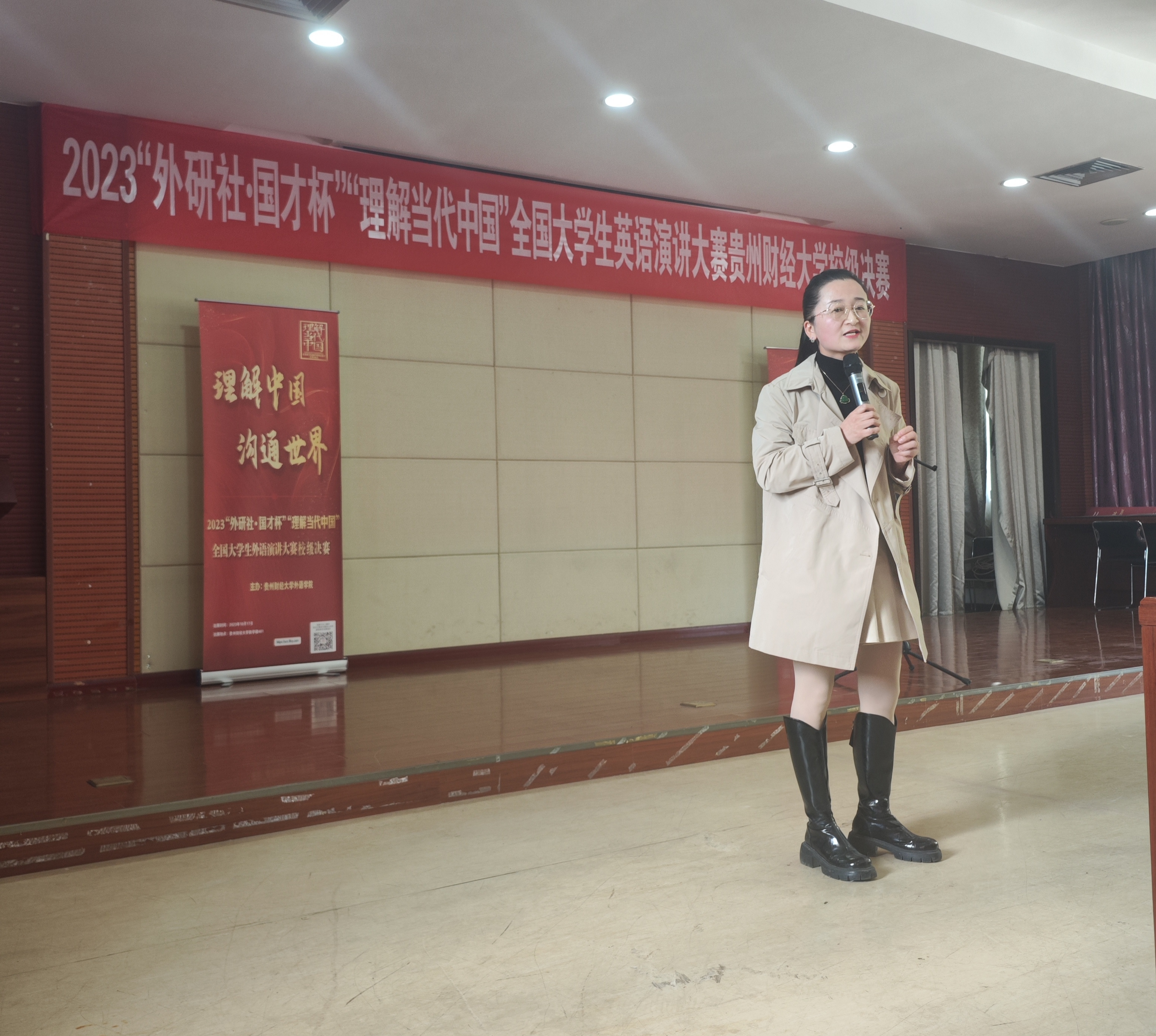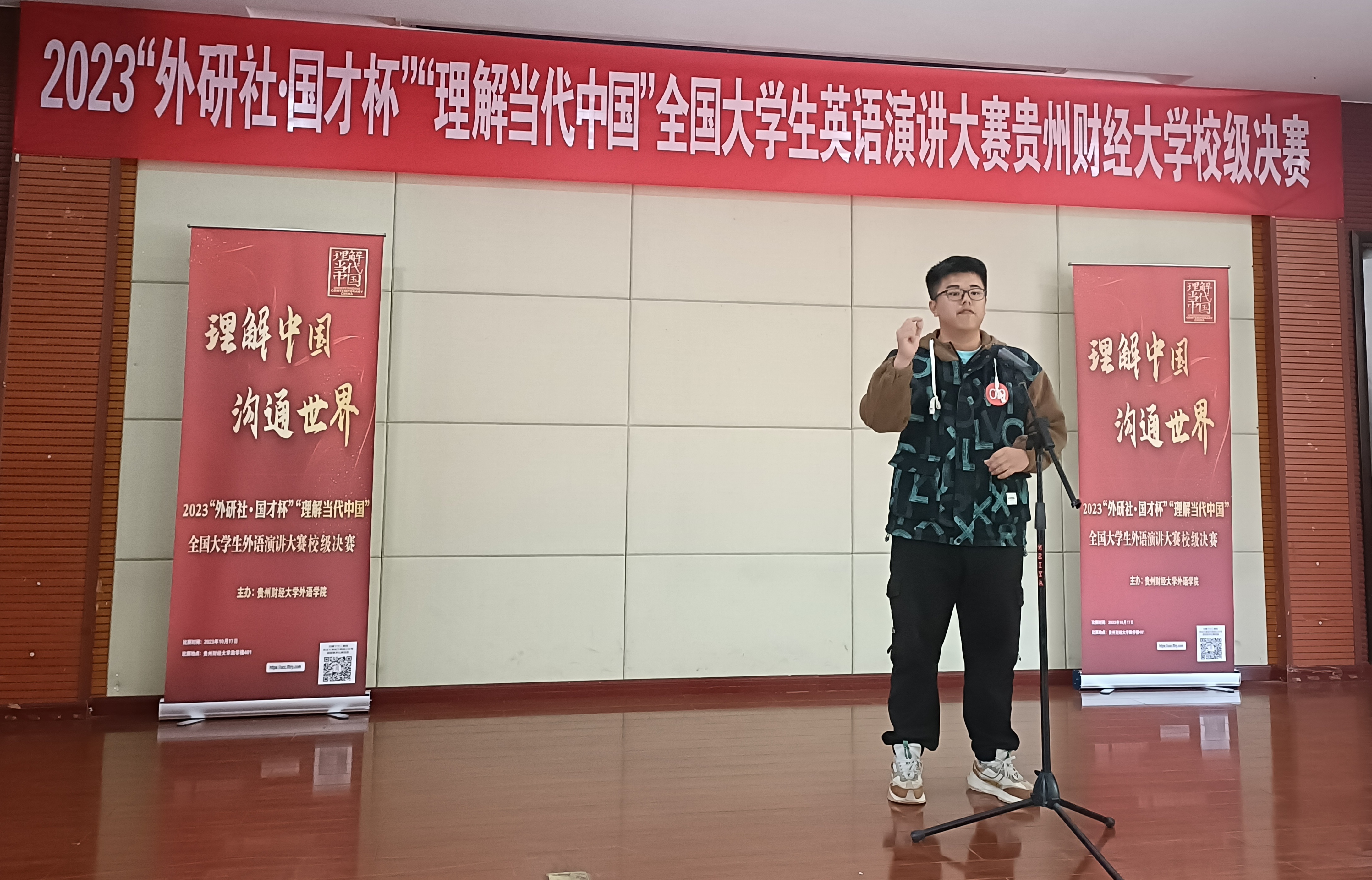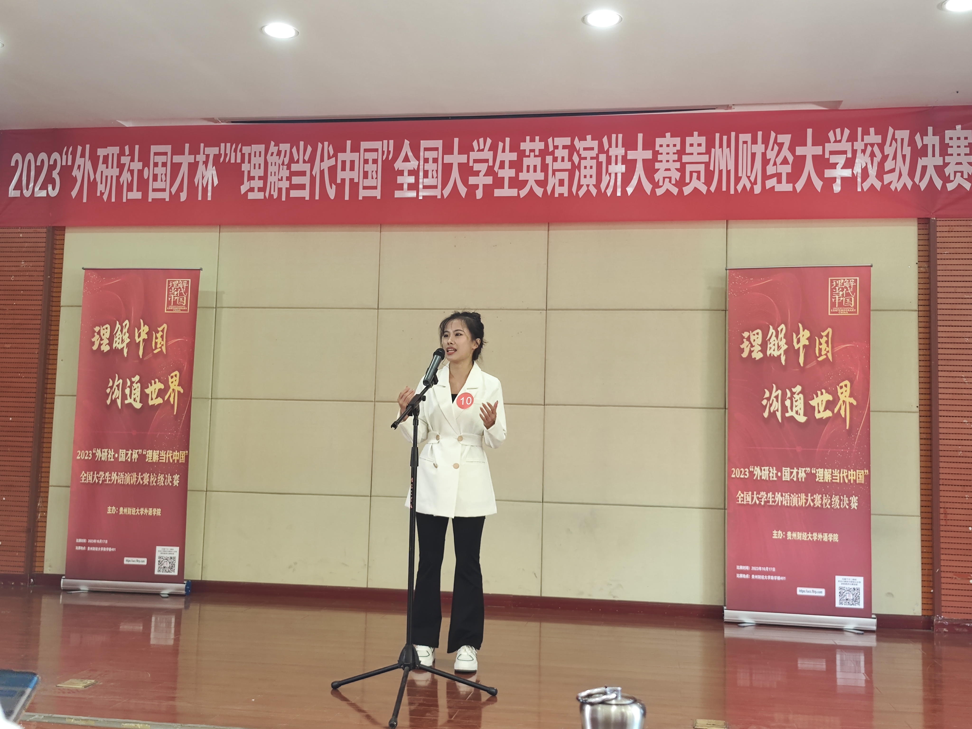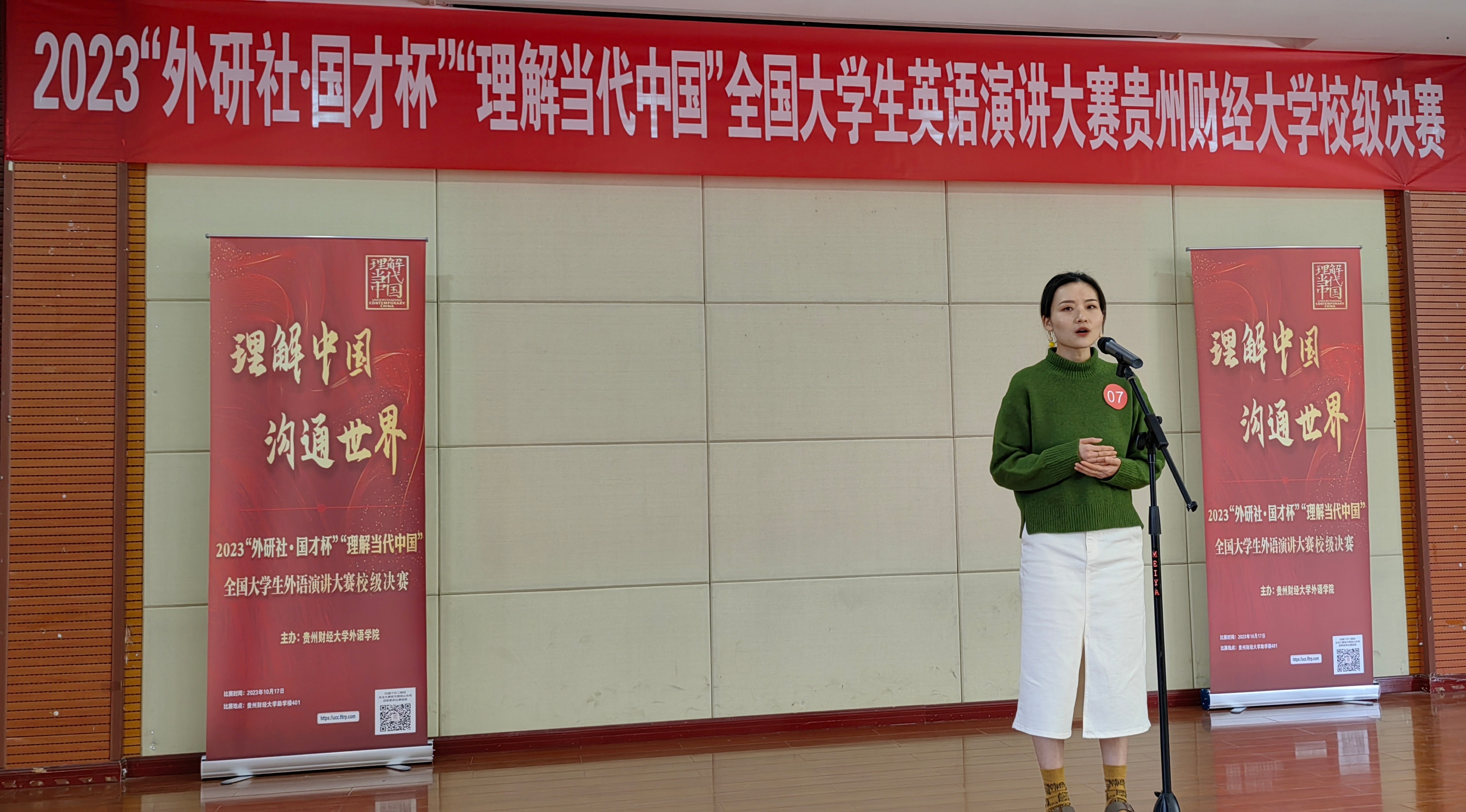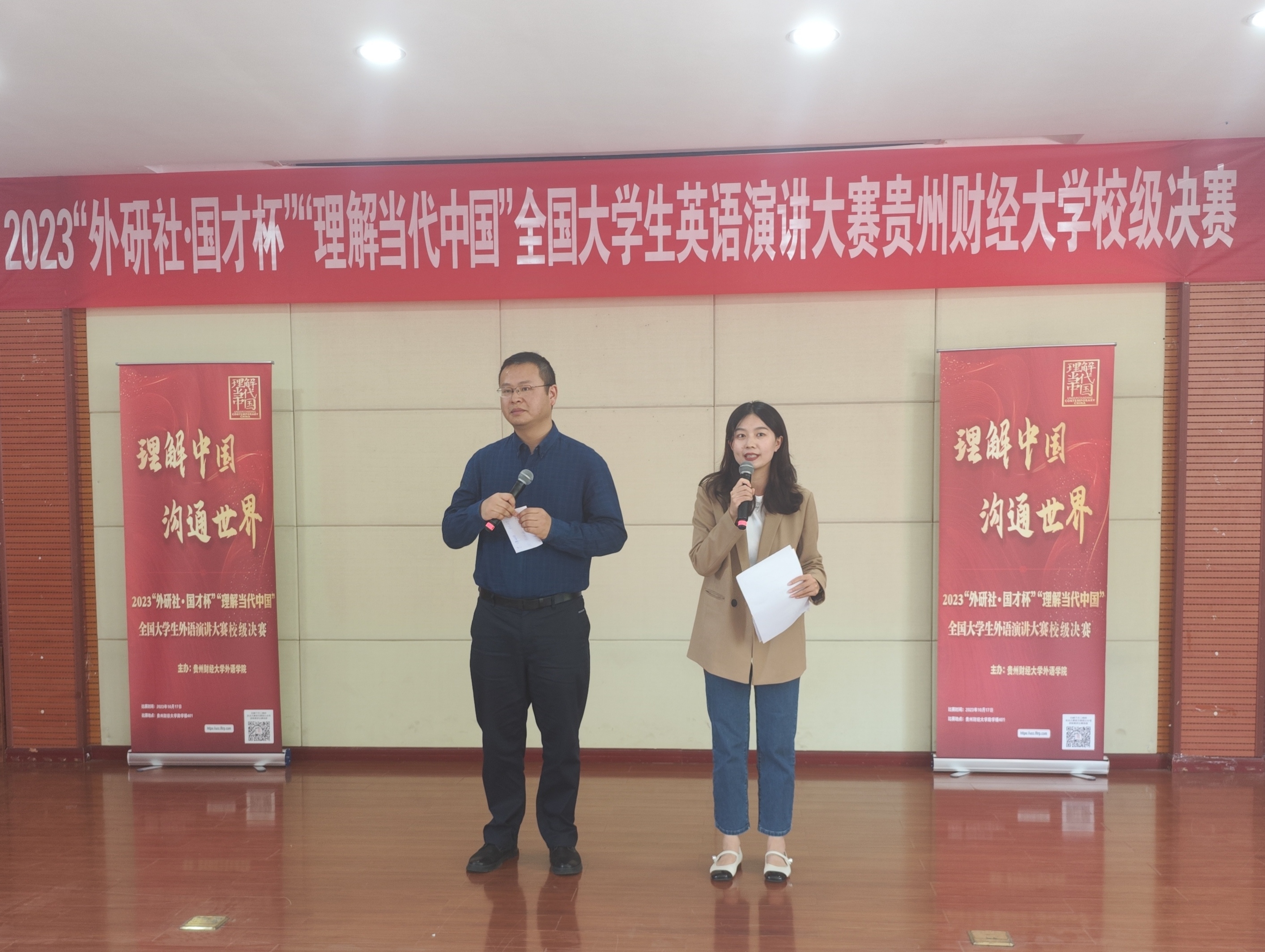 10月17日,由外国语学院承办的2023年“外研社·国才杯”“理解当代中国”全国英语演讲大赛贵州财经大学校园选拔赛决赛在励学楼401成功举行。