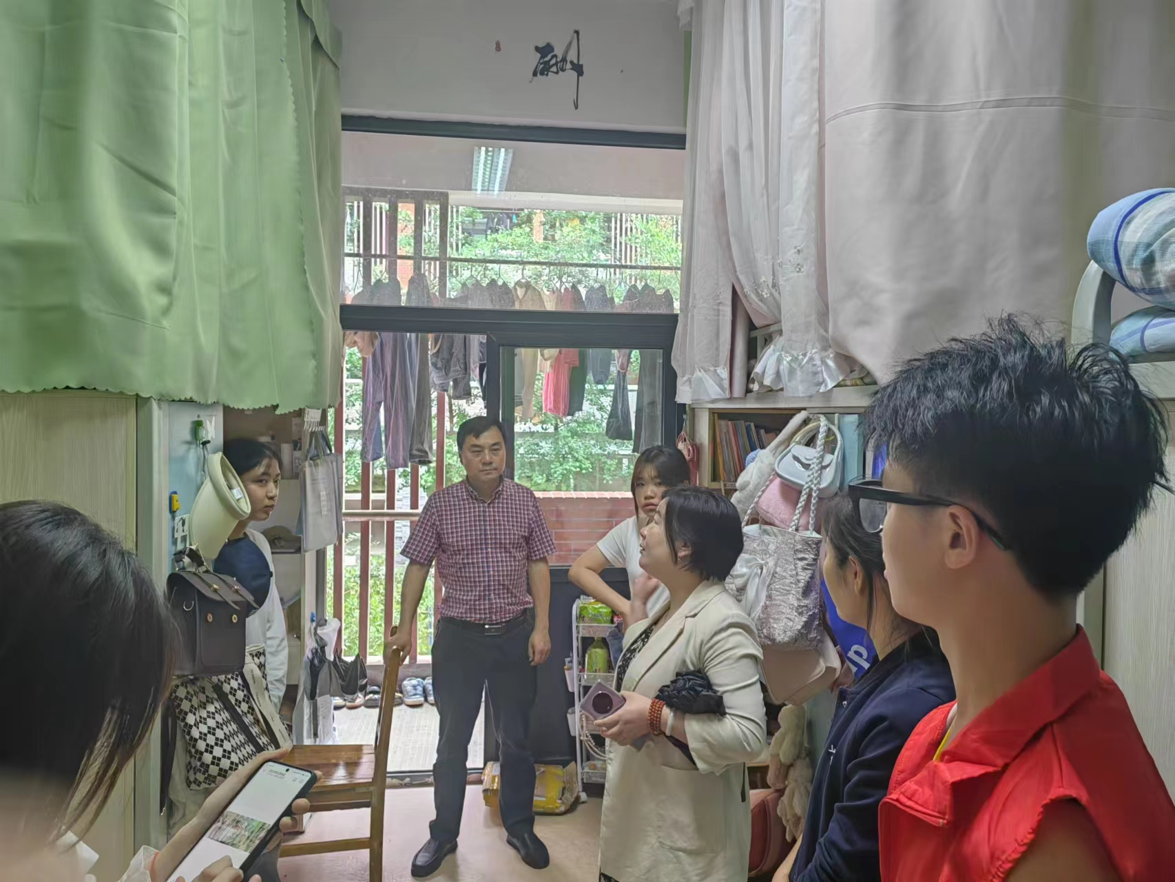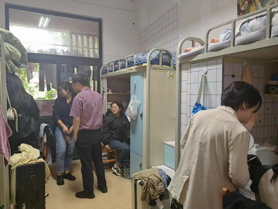 学院领导、老师深入同学们的宿舍,查看安全用电情况并与同学们进行亲切交流,了解同学们近期的学习、生活情况并叮嘱同学们要注意用电安全,严格遵守学校用电规章制度;要注意宿舍整洁卫生,积极营造良好的宿舍环境。