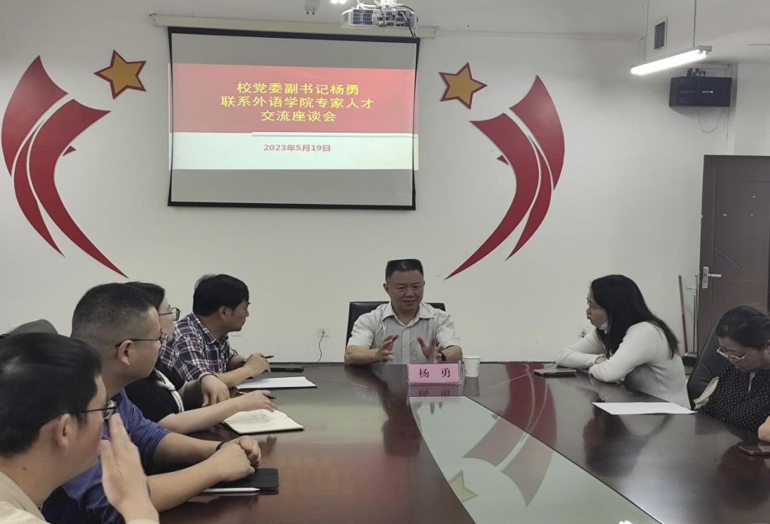 杨勇针对教师们提出的相关问题做了交流答复。希望各位专家人才发挥外语语言优势,更多关心学科建设、科研团队建设、对外合作交流工作,主动将个人发展融入学院发展,更多关心国家、区域发展需要,聚焦国家、区域重大需求,主动服务并融入国家战略和地方发展,更多关心学校建设发展,勇于科技创新,实现成果转化,做到与学校发展同向同行、同频共振。