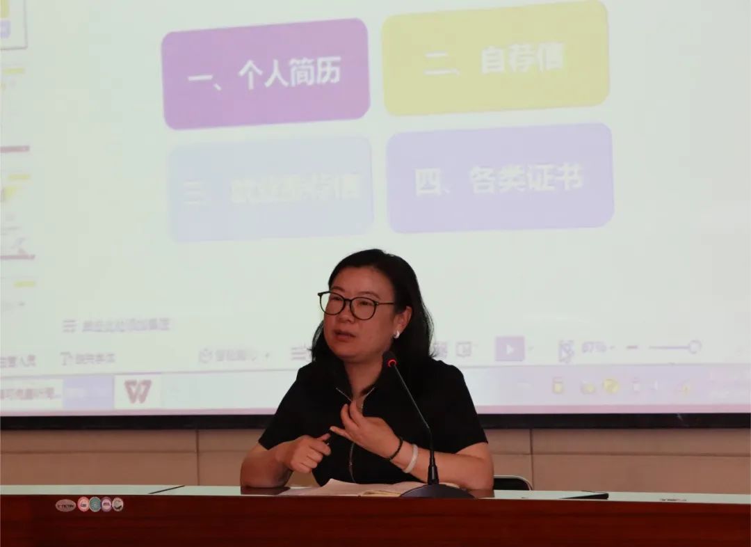 为提高2020级学生的求职应聘技能,辅导员刘天琪老师为学生进行了求职简历的撰写、面试技巧的运用方面的培训。刘天琪老师从用人单位招聘角度出发,用换位思考的方式阐明了求职简历的重要性,以及简历撰写的要点、技巧及注意事项等方面进行了深刻剖析和阐述,还就求职面试过程中的具体细节和技巧进行详细的介绍。