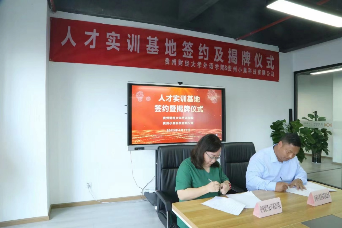 “人才实训基地签约暨揭牌仪式”在贵阳市高新区西部研发基地贵州小黑科技有限公司总部举行。