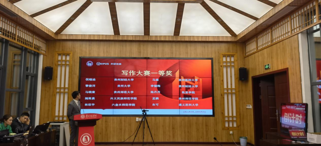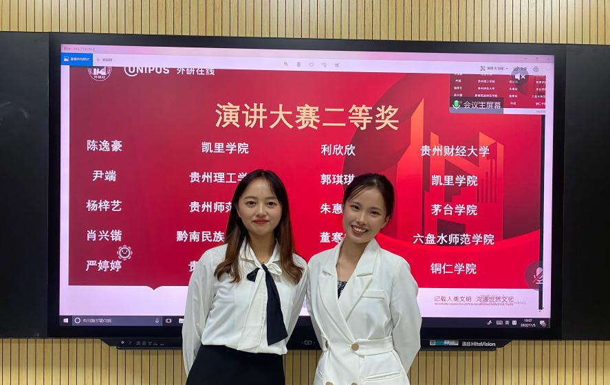 11月5日,2022年“外研社·国才杯”全国英语演讲、写作、阅读大赛贵州赛区决赛在贵州师范学院举行。根据疫情防控要,此次比赛采取线上线下相结合的方式进行,选手通过腾讯会议参加演讲比赛,借助iTEST参加写作和阅读比赛,评委集中评选。据悉,来自全省20余所高校的261名选手参加了此次贵州赛区决赛。经过激烈的角逐,我校选派的12名选手分别获得一等奖3项,二等奖3项,三等奖3项,优秀奖3项。