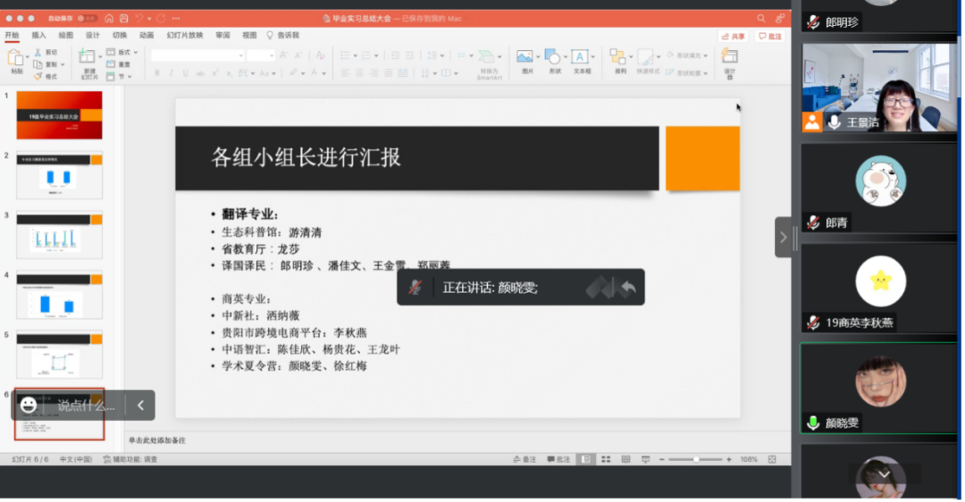 随后,各个实习点的学生逐一发言,总结了各自在实习过程中的收获与感受。
