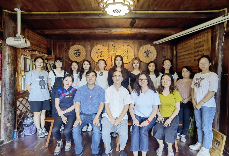 会上,李天翼教授介绍了西江千户苗寨的现状,并由助理研究员对西江千户苗寨文化研究院的主要工作情况进行了汇报。随后,同学们针对翻译过程中遇到的问题进行了发言和讨论。同学们表示之前对苗族文化较为陌生,如“蝴蝶妈妈”、“妹傍留”和“鼓藏”等民族特色词,故在翻译过程中,着重于还原民族文化的内涵和面貌,展示中华文明的美丽,传播世界文明成果。此次西江之行,实地调研让同学们更直观地感受少数民族文化的魅力,更深刻地体会到“以文载道、以文传声、以文化人”的内涵。