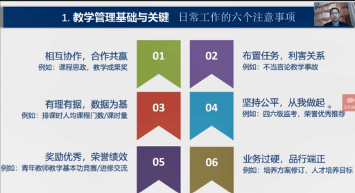 本次培训课程主题是探索信息化时代基层教学组织和虚拟教研室的建设模式。课程邀请了天津外国语大学国际商学院院长郭建校、清华大学在线教育中心主任汪潇潇、中北大学杏云虚拟教研室主任薛英娟及清华大学电机系教授于歆杰等专家进行了讲座,从对《教育部高等教育司关于开展虚拟教研室试点建设工作的通知》的思考和分析,基层教学组织的教学管理与核心业务能力提升,教研室建设探索与实践,通过在线专题讲座、案例分析、教研观摩的方式与在线老师进行探讨及交流。