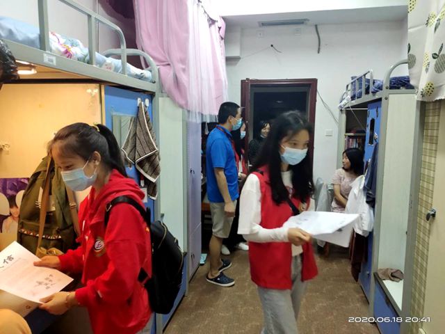 进入宿舍后后胡书记询问了学生近期学习生活情况,要求同学们在疫情期间要高度重视安全问题,搞好宿舍卫生,保持宿舍整洁干净;康维老师、王思策老师、于倩老师特别强调同学们要注意用电用水安全问题,杜绝在寝室使用大功率电器;王莎莎老师及志愿者同学向同学们普及资助诚信教育知识。
