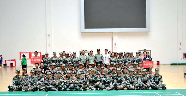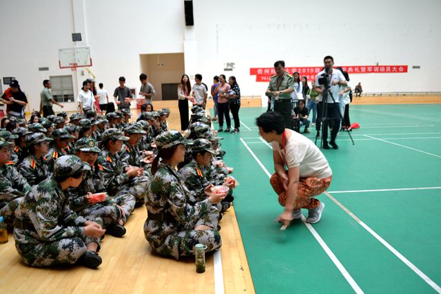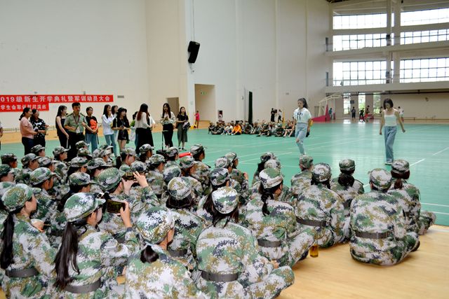 首先,由胡张林老师和张虹老师代表学院党政领导班子对新生军训表示关怀和慰问,要求新生在军训中锻炼意志、锻炼体魄。同时,对教官表示感谢与敬意。随后,胡张林老师和张虹老师亲手将慰问物资交给每一位新生。接着,由学生会成员蔡婷婷、陈梓语以及王晓晓同学带来军训慰问文艺表演。最后,学院领导与大家合影留恋。