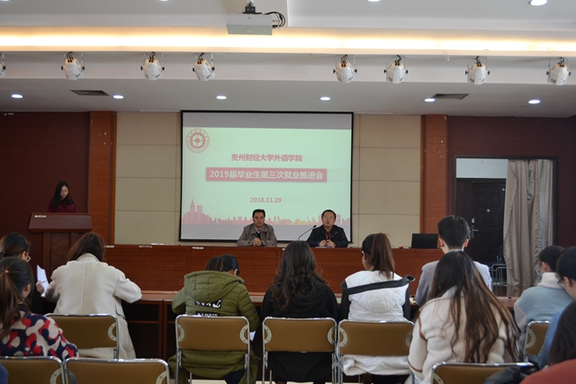 在励学楼401举办2019届毕业生第三次就业推进会。学院党委书记胡张林、学院党委副书记王钊出席会议,2015级辅导员王思策和全体同学参加会议。