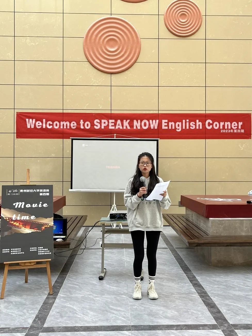 承办的Speak Now英语角第四期活动在学生活动中心如期开展。本期活动主题为“Movie Time”。