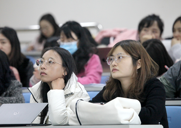 本次示范课由西班牙语教研室的赵琳老师、日语教研室的袁先婷老师、英语专业教研室的李遵老师、大学外语第一教研室的杨莎老师主讲。她们以有效的教学设计,丰富的教学经验,扎实的课堂训练,为全院教师展示了高水平范式课程,起到了很好的引领作用。几位优秀教师以其课程特色鲜明、结构完整、设计精妙吸引了所有参训交流的老师们,在讨论交流环节,大家对教学策略设计成为指导教材的可能性、学生的个人档案建立和语言熟练度之间的处理,以及如何给出相应的反馈、尤其是并将价值塑造、知识传授和能力培养三者有机融为一体,育人角度“入微”,教学效果“入味”这些专业技能进行了热烈讨论。