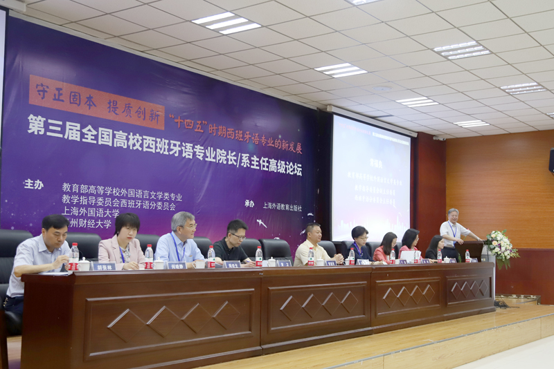 和上海外语教育出版社联袂举办。来自北京外国语大学、上海外国语大学、北京大学、复旦大学、西安外国语大学、南京大学、浙江大学、大连外国语大学、四川外国语大学等全国60所院校的80多名西班牙语院长、系主任参加了会议,并以专题讲座、圆桌论坛、分组讨论和大会交流的方式围绕“十四五时期西班牙语专业的新发展”这一会议主题就“当前高校西班牙语专业建设的重点”、、“新文科背景下西班牙语专业发展与创新”、“西班牙语专业一流专业建设和一流课程建设”、“新时代课程思政与西语专业教育的融合”与“西语专业教学的新思路、新模式、新举措”等不同方向进行了充分而深入的探讨。