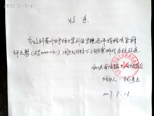 此次捐款帮扶活动得到了大田村群众的认可,该村村民委员会在收到捐款后及时向色色动漫