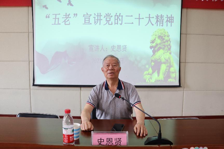 邀请校关工委委员史恩贤到励学楼401会议室为学生们宣讲党的二十大报告。