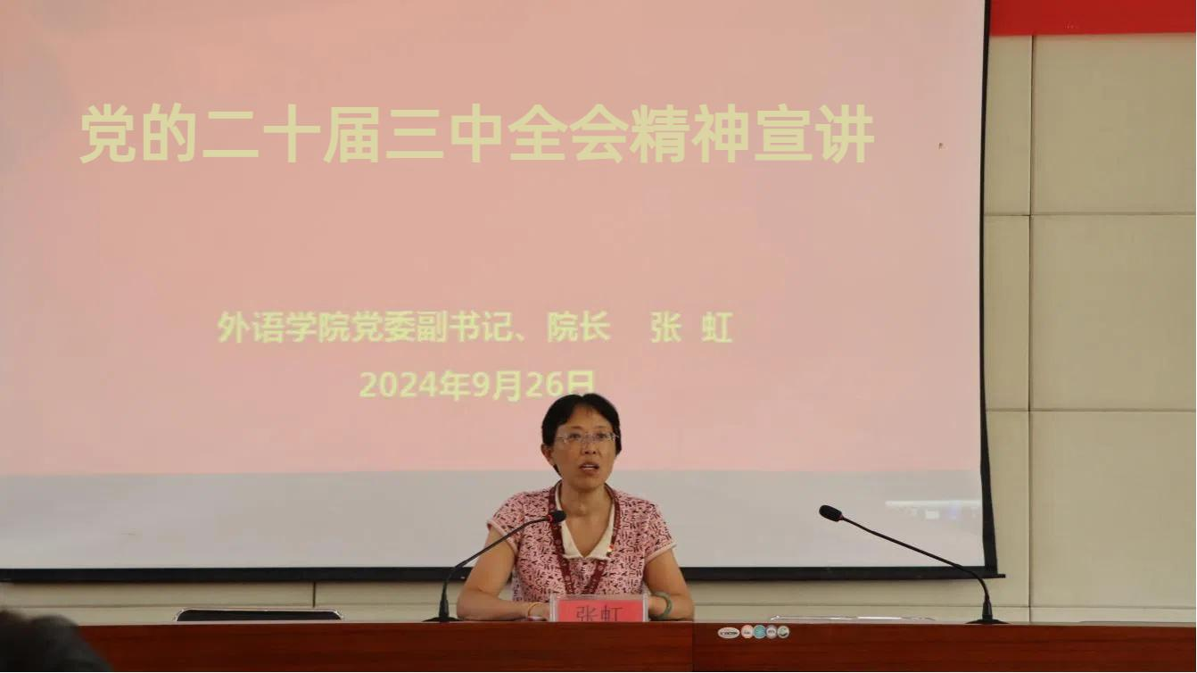 党委副书记、院长张虹在西区励学楼401会议室为学生宣讲党的二十届三中全会精神。色色动漫