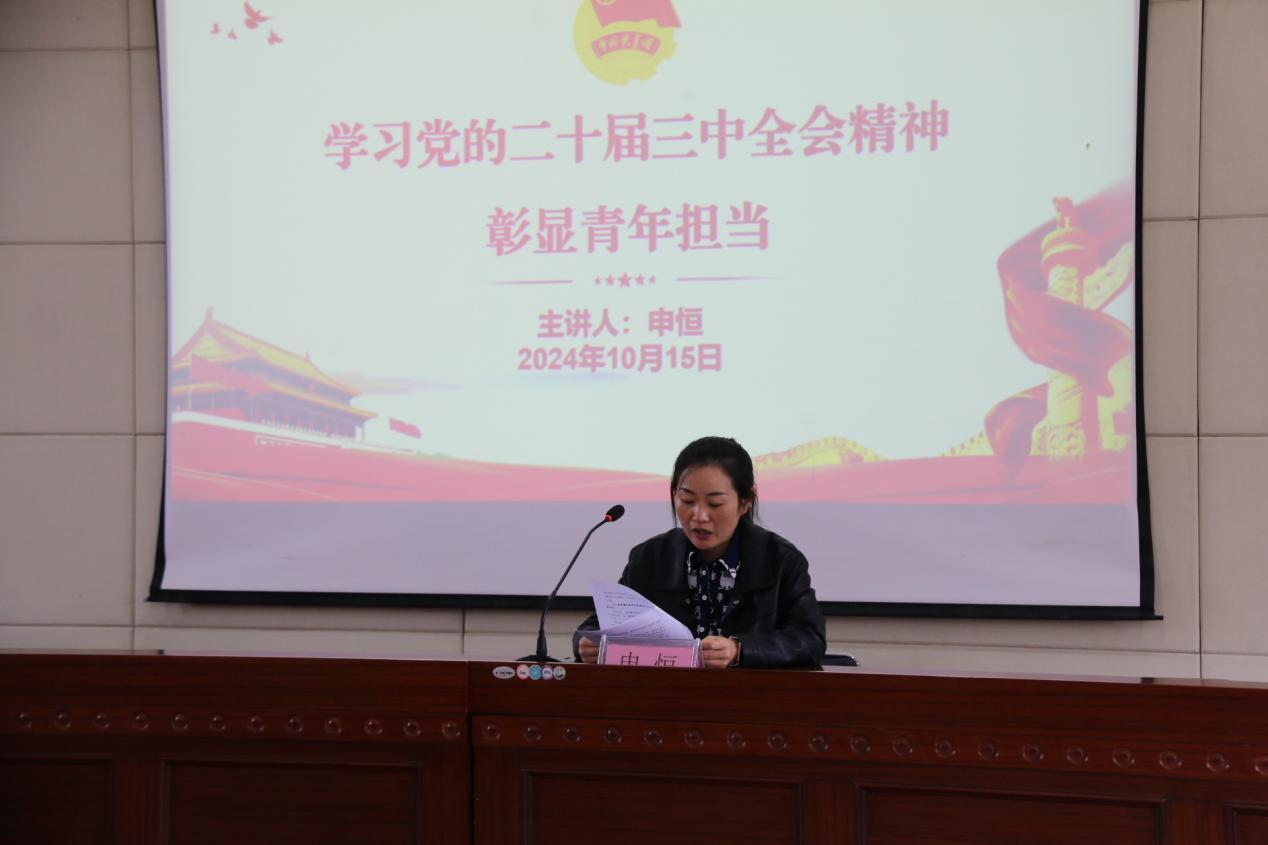 学生科副科长申恒首先围绕党的二十届三中全会基本概况、党的二十届三中全会精神的核心要义,对党的二十届三中全会精神进行了系统阐述和深刻解读。接着,同学们通过观看《党的二十届三中全会解读:这些改革举措与我们的生活息息相关》等视频,更加直观地感受和领悟全会精神。最后,申恒鼓励广大青年学生坚定听党话、跟党走的政治信念;加强专业学习,提升综合素质;积极投身实践,发挥先锋模范作用;将自己的命运同国家民族的命运紧紧联系在一起、把人生理想融入国家和民族的事业中,争做有理想、敢担当、能吃苦、肯奋斗的新时代好青年。