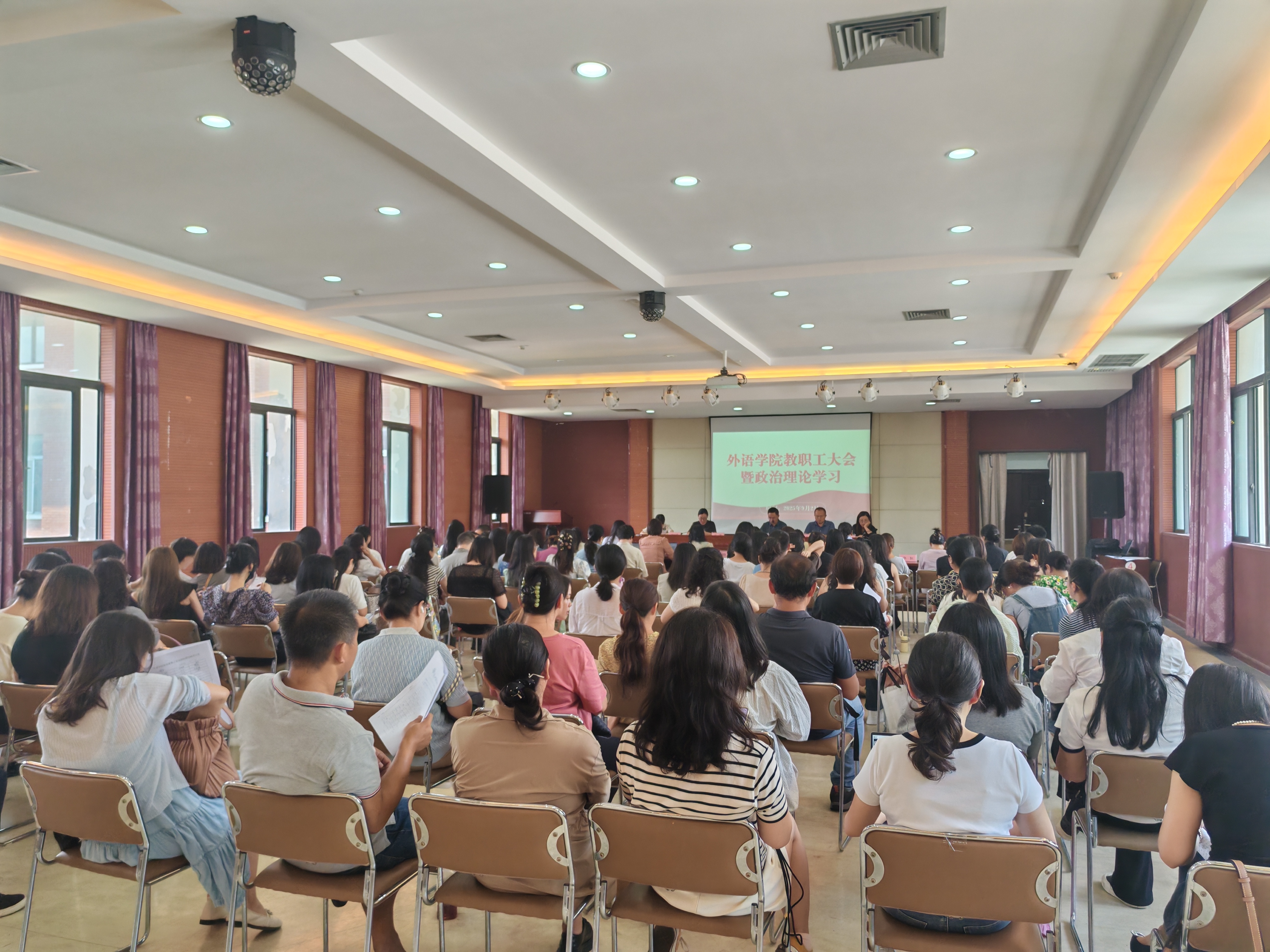 最后,黄贵平围绕新学期各项工作的开展提出了明确且具体的要求:一要持之以恒地加强对习近平新时代中国特色社会主义思想以及各类重要会议精神和文件的学习,用先进理论武装头脑,切实将学习成果转化为指导实际工作的强大动力;二要不断强化师德师风建设理论知识的学习,将立德树人根本任务融入教育教学全过程,持续提升教书育人的能力与水平,努力成为新时代的“四有”好老师;三要积极主动配合完成本科教育教学评估工作,以此次评估为契机,全面审视教育教学工作,推动教育教学能力实现质的提升,为培养新时代的复合型外语人才奠定坚实基础;四要全力以赴做好毕业生就业相关工作,拓宽就业渠道,加强就业指导,助力毕业生顺利就业;五要高度重视学院安全工作,强化安全责任意识,筑牢校园安全防线,营造安全稳定的育人环境。