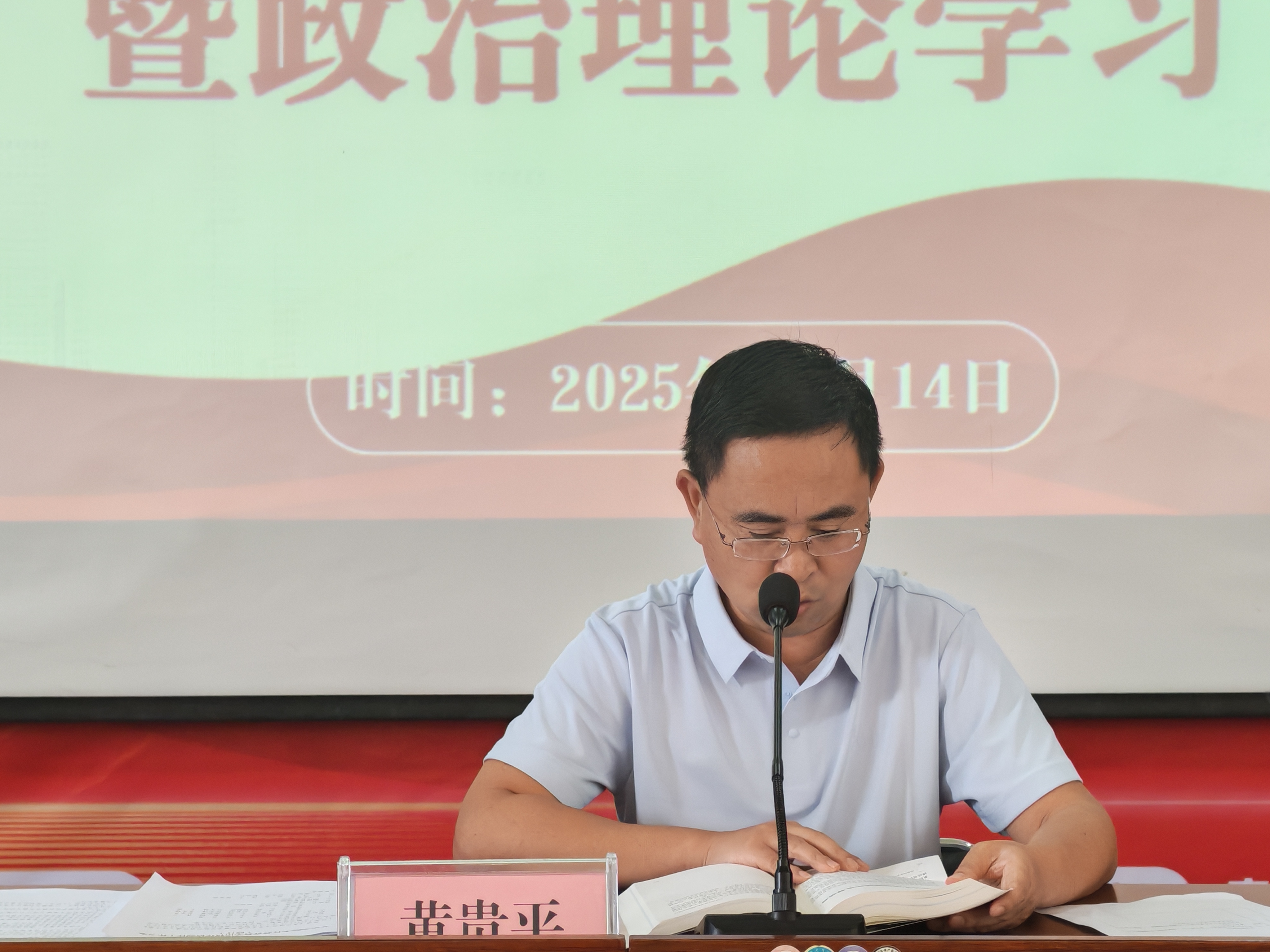 在励学楼401会议室召开政治理论学习会。院党委书记黄贵平主持会议,全体教职工参加了会议。