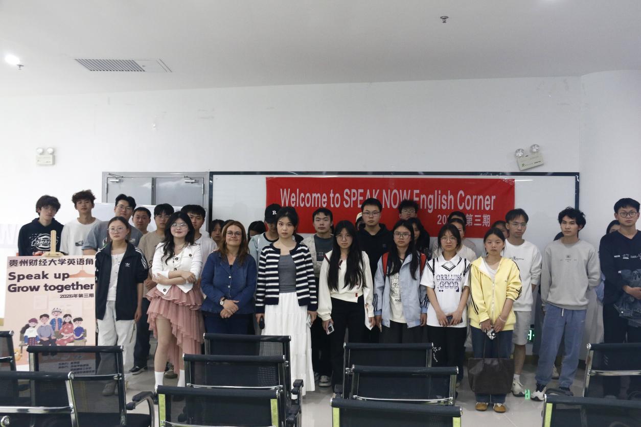 团委承办的“Speak Now”英语角第三期在学生活动中心四楼开展。本期主题为“Speak Up,Grow Together”,旨在引导同学们在英语交流中讨论家庭教育,加深自我认识,外籍教师Caroline Navarrina应邀参加。