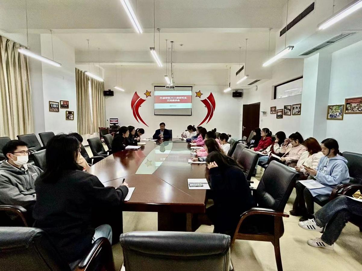 党委书记胡张林、院长张虹、党委副书记汪欢、辅导员申恒以及2021级英语笔译班全体同学参加会议。会议由辅导员申恒主持。