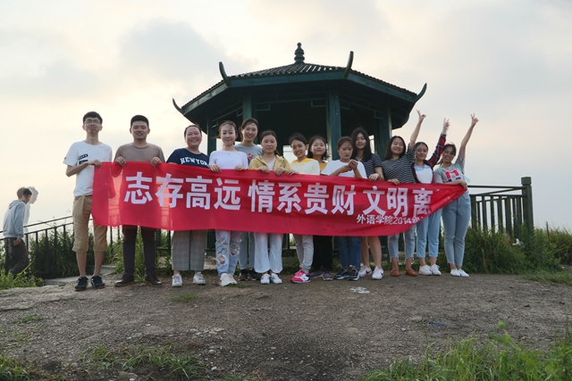 组织毕业生举办了“志存高远 情系贵财 文明离校”爬斗篷山签名活动。