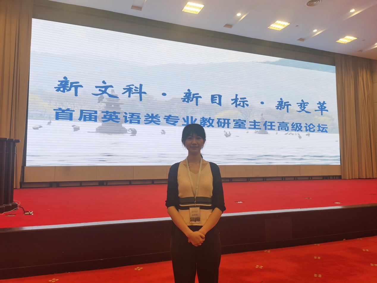 选派英语系教师王景洁赴浙江杭州参加“首届全国高校英语类专业教研室主任高级论坛”。本次论坛主题为:“新文科 新目标 新变革“,聚焦”新文科“建设背景下人才培养模式创新、学科专业优化、课程质量提升等核心问题。