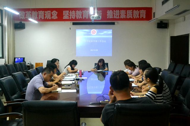在励学楼301会议室召开新学期工作例会。学院党委书记胡张林、院长王健芳、党委副书记张忠民、副院长雷晴岚及全体行政人员参加会议。