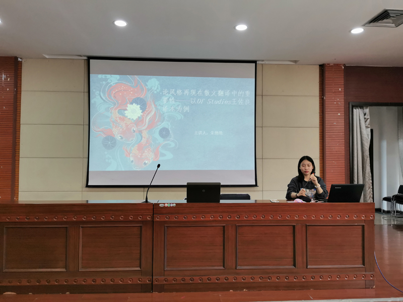 最后进行分享的是朱艳艳同学。她就“论风格再现在散文翻译中的重要性——以Of Studies王佐良译本为例”一题展开了论述,对比了该文在不同风格的译文中再现出的神韵和特点,并与现场同学进行了讨论和互动。